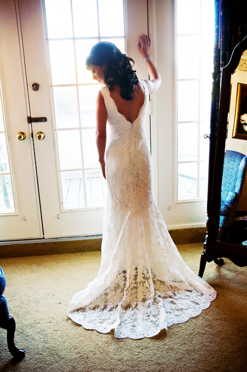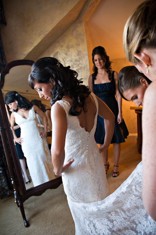 Pam gets help putting on her G-O-R-G-E-O-U-S Monique Lhuillier gown. Stunning!!!