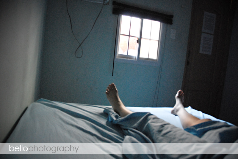 As I mentioned, the hostel in Panama City wasn’t the best. Our room was a 8′ x 8′ blue box with dirty walls, a super uncomfortable double bed, tiny window and an old AC unit that only went on from 9PM – 9AM. And, it was HOT…crazy hot, especially coming from winter temperatures. This first photo is a sort of self portrait I took our first morning in Panama City. I remember laying in bed, sweating my tootsies off, thinking about the crappy room and how the scene, with the thin sheets and dirty walls felt like something out of an insane asylum. It’s kind of dark spirited for the start of our post, but it makes me smile because at the time Andy & I were wondering if we’d made a big mistake with Panama and if we should leave, go home, go back to Nicaragua…what?