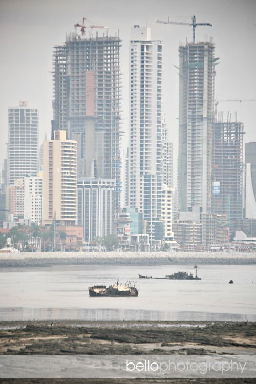 The next day we walked around Casco Viejo, or old town, and this next photo is a view of Panama City from Casco Viejo. We were surprised at how many skyscrapers there were in the city. We were told the majority are apartments and many are actually vacant…yet construction continues. It was really hot and humid in the city and thick smog hung in the air. Sunken ships left abandoned complete the scene.