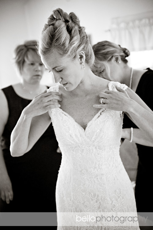 I love how elegant Rachel looks in this next one, as her sister, Jessica (right) and Paul’s sister, Adrienne (left), help out.