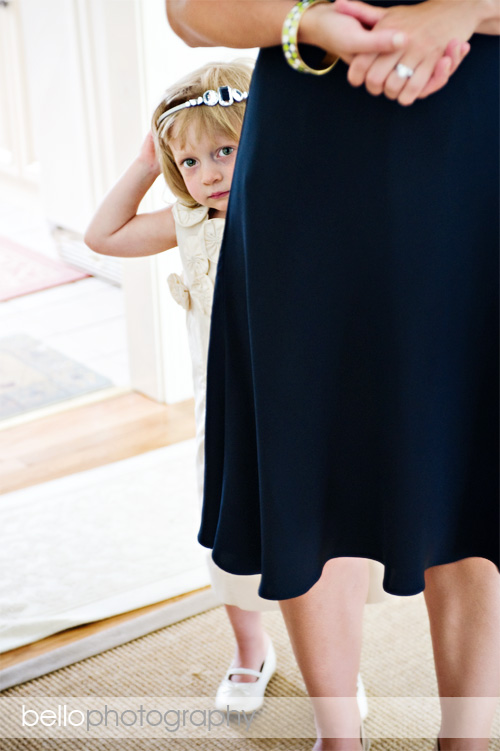 Kaitlyn’s sister and fellow flower girl, Chloe, timidly peeks out from behind her mom. Love the eyes!!