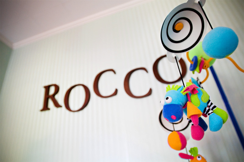 Love this colorful mobile above Rocco’s crib….
