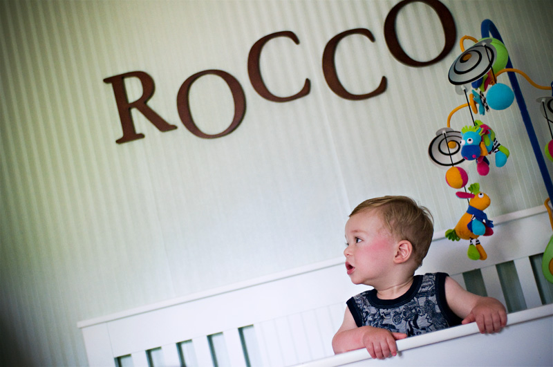 Rocco wakes up and wonders who all the people are in his room. Hey Dad? What’s going on? (I love his sleep face, rosy little cheeks! That’s the side he was lying on. Too cute!)