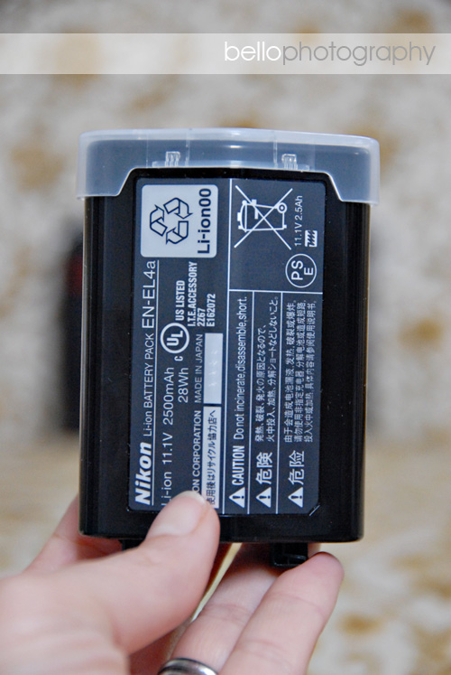 Like the camera itself, the battery for the D3S is on the large size. But, sometimes bigger is better. This puppy has a battery life of approximately 4,200 shots per charge. Thank you Nikon!