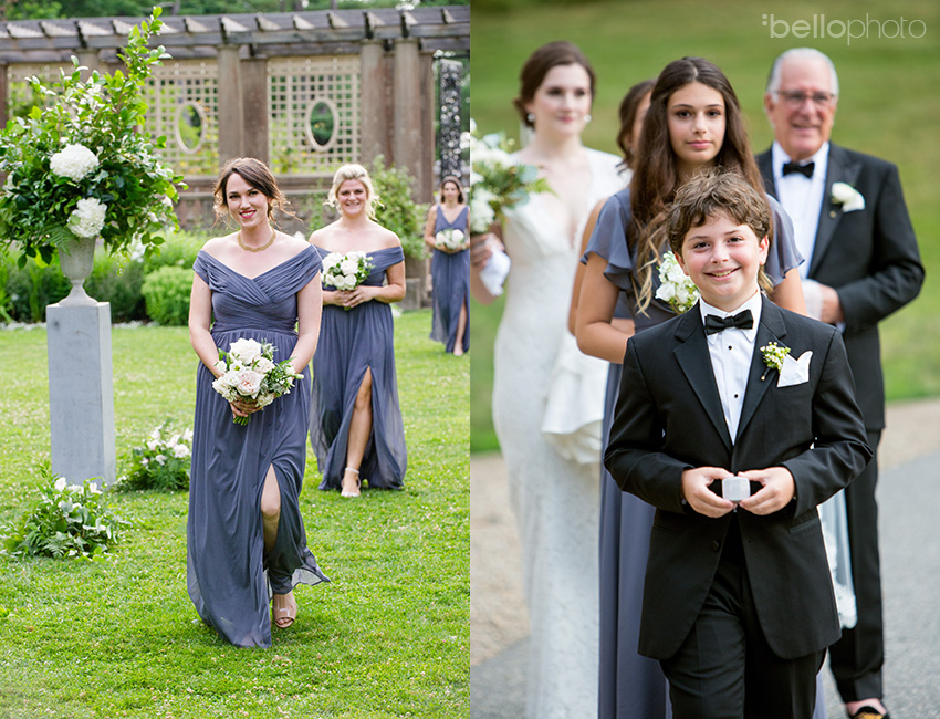 The bridal party lines up and makes their way down the aisle, including ring bearer extraordinaire and junior bridesmaid, Lauren’s kiddos…Oliver and Julia.