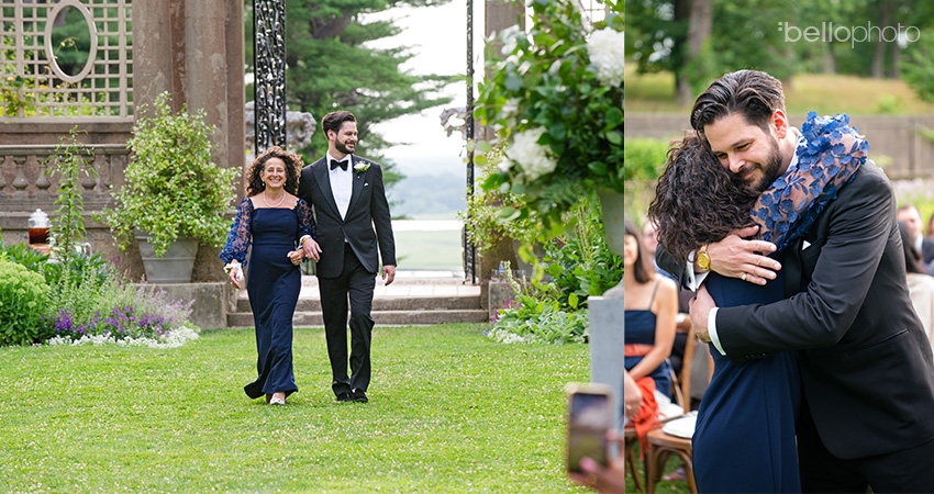 Here comes the groom, on the arm of his lovely mom..love the look on their beautiful faces.