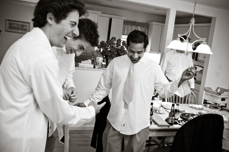 John cracks up at his good friend & groomsman, Samir’s, lame attempt to tie a tie. Sorry Samir, but it is pretty pitiful!