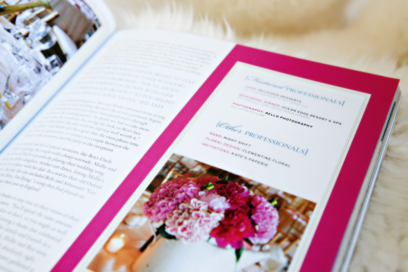 We were so excited last fall when we heard that they wanted to feature one of our weddings in their debut issue. We sent a few photos, expecting it would be a page or two, but when the magazine arrived in our mailbox yesterday, we were so stoked to see a few editorial images scattered throughout, AND a six-page spread featuring images and an interview with our very hip New York couple, Mollie & Ben, who got married this past summer at the uber elegant Wequassett Inn in Chatham. Mollie & Ben are such an awesome couple, we were so excited for them to have their wedding highlighted in such a cool way!!