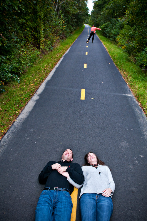 The town of Falmouth recently completed an extension of their Shining Sea Bike path, which initially was about 3.3 miles, but now extends over 10 miles into North Falmouth, crossing through a portion of Bourne Farm’s property. I wanted to try something different and have Meg & Brian lay down in the middle of the path and play with the lines of the path. It just so happened that a rollerblader came rushing past as we were preparing for the shot and well, the result was even better than my original idea. I LOVE when that happens!