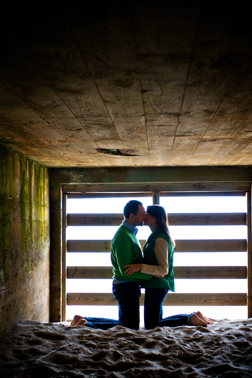At first, I think they wondered what the heck we were thinking asking them to climb through the wooden slats to go sit inside this little shelter, rather than take shots outside on the pretty beach. But, they trusted us, and as always: a funky idea + a good dose of trust = some killer images.
