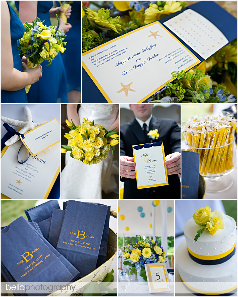 Meg & Brian chose blues and yellows as their colors and it was so perfectly summery and reflective of the sun & sea here on Cape Cod. Loved it!
