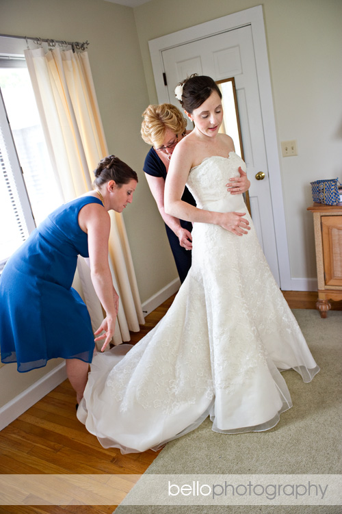 Meg gets help getting into her beautiful gown from her super sweet mom, Chris, & her talented sister, Kasey, who gave one of the sweetest MOH speeches ever!