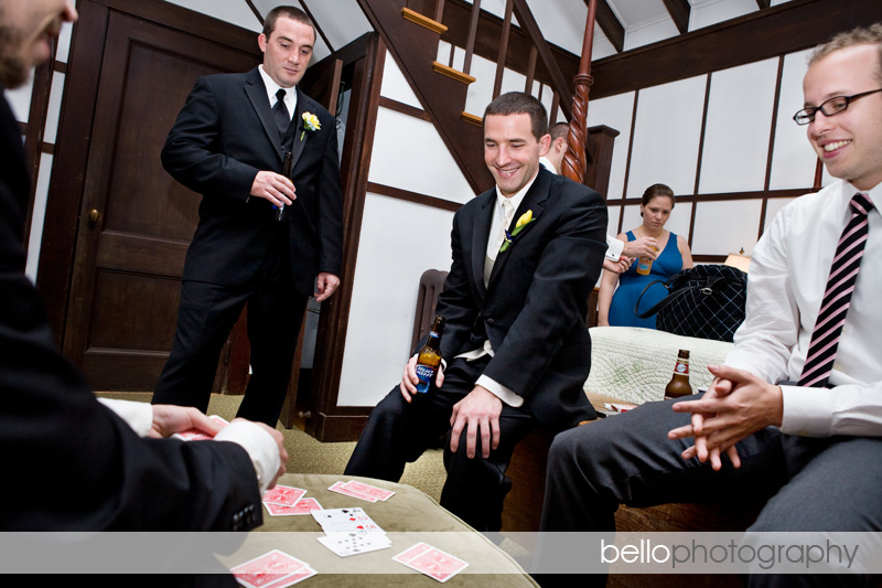 Brian & his groomsmen pass the time before the ceremony with a quick game of poker…