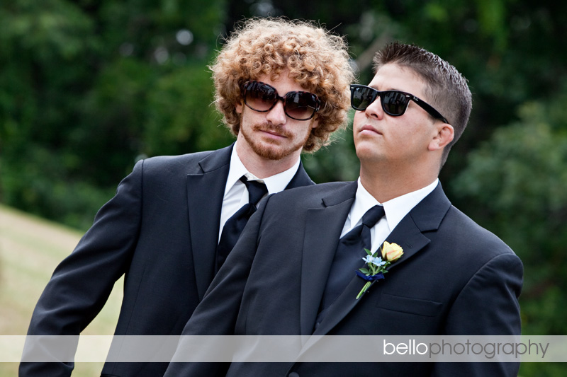 Brian’s groomsmen Matt & Nate looking unassumingly cool in their shades. By the way, this shot was completely candid. Andy grabbed it of the guys as they were waiting for the girls to finish having their photos taken. Is Matt’s hair the bomb or what? And, I’m diggin’ those 70s shades!