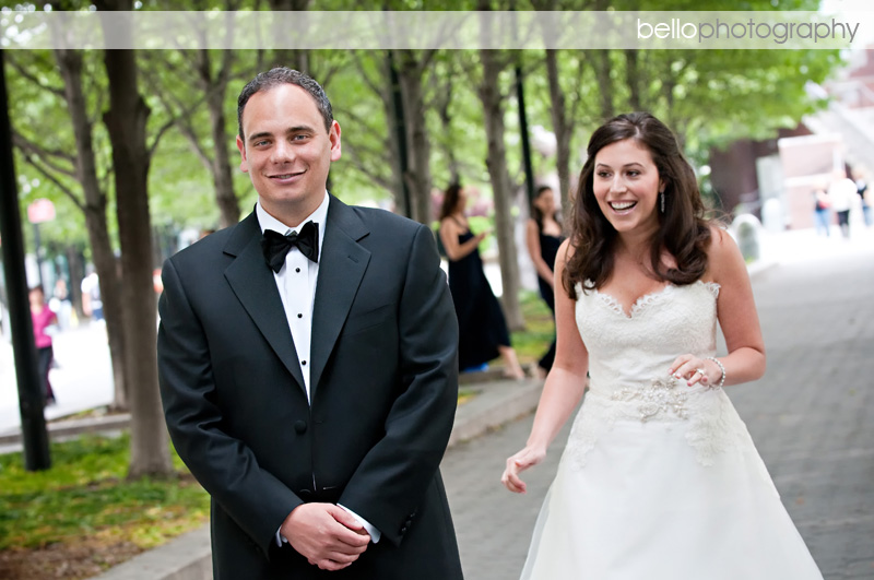 We’re always excited when our couples want to see each other before the ceremony. If you plan for enough time, it really provides a great opportunity for getting some fabulous photos in a very relaxed setting, without having to miss your cocktail hour. And, since your wedding day will already go by in a blink, it’s nice to have that extra hour to enjoy. Here Pam gets ready to see Geoff for the first time. Can’t you just feel the anticipation looking at the excitement on their faces. So fun!